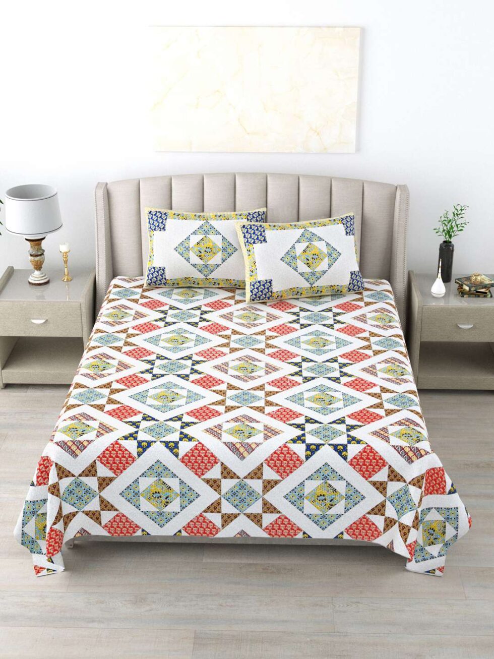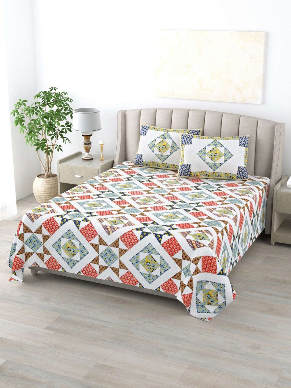 100% Pure Cotton Traditional Printed Bedsheet for Double Bed King Size Bedsheet with 2 Pillow Covers